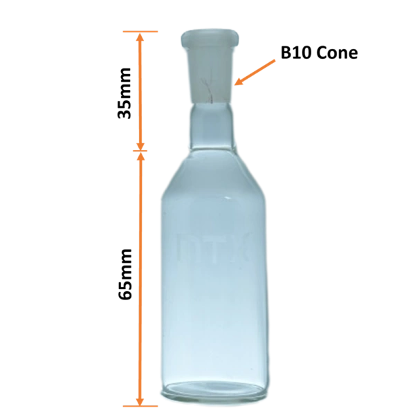 The bottle comes with B10 cones for a secure connection to MTX reference electrodes. Designed exclusively for MTX reference electrodes, ensuring safe storage and prolonged lifespan. Made of durable and chemically resistant borosilicate glass for electrode protection.Offers a contamination-free environment for accurate electrode storage.Essential for maintaining quality control in electrochemical experiments.Secure and Organized Storage Solution for Laboratory Reference Electrodes
