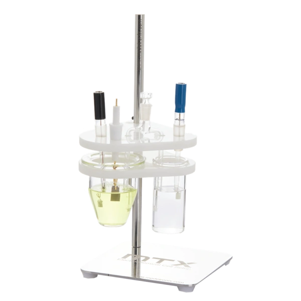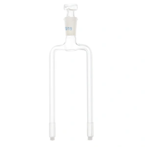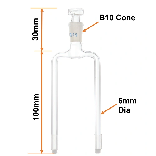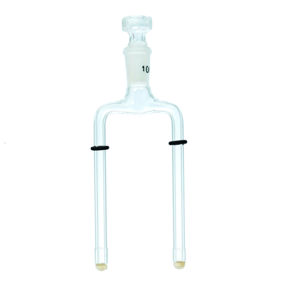 The salt bridge, meticulously crafted as a dual-compartment tube with a sturdy borosilicate glass construction and featuring a B10 socket, incorporates a replaceable glass-based porous frit. The straightforward refilling process is facilitated through the convenient B10 socket, and adding a B10 stopper further enhances its practicality. The salt bridge’s significance in electrochemical cells lies in its crucial role in facilitating ion flow between compartments, ensuring electrical neutrality. In the realm of electrochemical experiments, it acts as a safeguard against contamination and contributes to maintaining stable reference potentials, thereby enhancing the precision and reliability of measurements. Additionally, the O-ring inclusion ensures a gas-tight fitting, further optimizing the salt bridge’s functionality in experimental setups.
