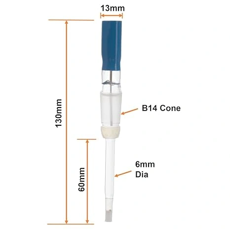 - The standard ground joint 14/23 of the electrode, enables easy assembly to electrochemical cell tops and also ensures gas-tight fitting.